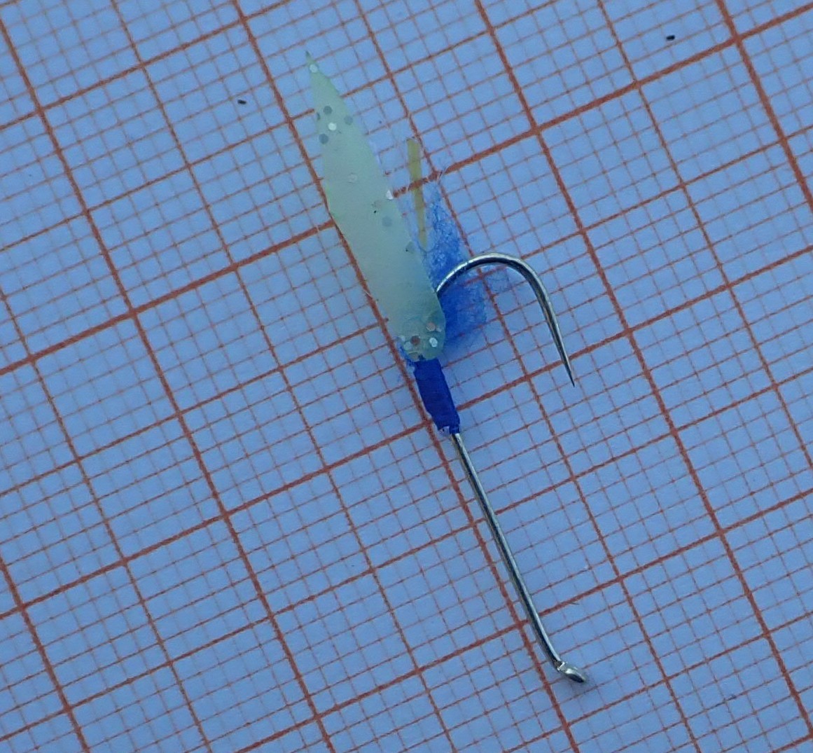 - Блесна махалки на малоротую корюшку, навагу и зубаря при плохом клеве на малых глубинах с обвязкой и мушками из мобискина, антрона, белковой ваты. Мушки имеют светонакопительные элементы