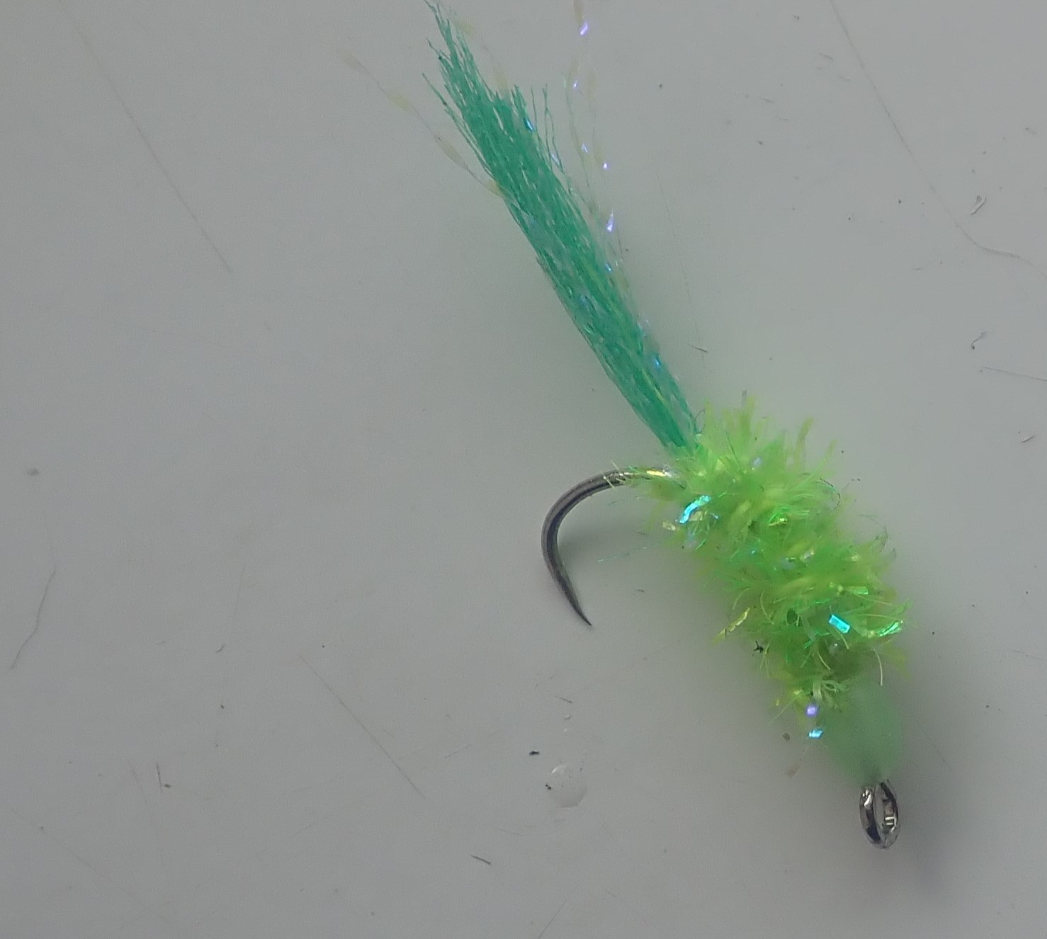 Самосброс на крупную корюшку на меляках Тело УФ салатовый Синель Вапси Хвостик УФ Ярко Зеленый Антрон Вапси и люрекс Кеймура Тохо Головка пластик фосфор