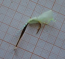 - Блесна махалки на малоротую корюшку, навагу и зубаря при плохом клеве на малых глубинах с обвязкой и мушками из мобискина, антрона, белковой ваты. Мушки имеют светонакопительные элементы