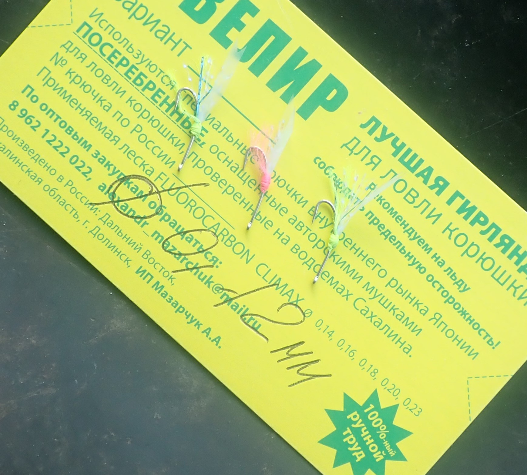 - Крючки для ловли корюшки на Белом Море и Балтийской корюшки с мушками из рыбьей кожи фирмы Хаябусу из Японии Уги № 4 мм