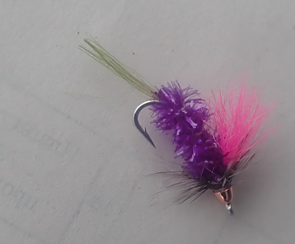 Мушка на ленка симу Егерь Фиолет с крылом Мех хвост теленка УФ Розовый Щетинки Мех Козы . Жабо перо курицы Гризли медная конусная головка Японский усиленный крючок MARUTO c40 HW # 8