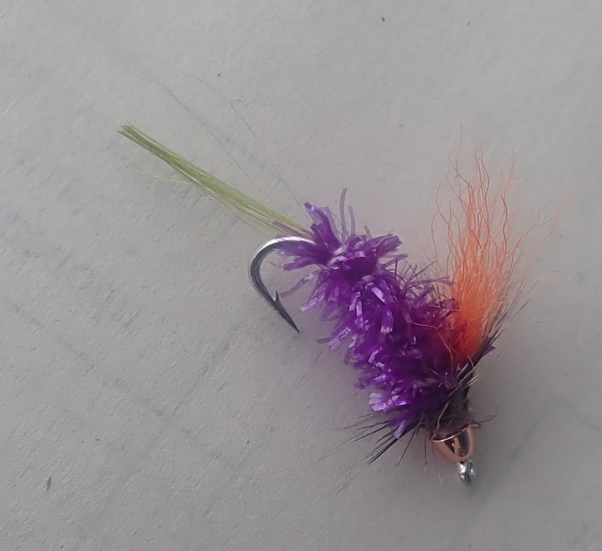 Мушка на ленка симу Егерь Фиолет с крылом Мех УФ Красный Хвост Теленка Щетинки Мех Козы . Жабо перо курицы Гризли медная конусная головка Японский усиленный крючок MARUTO c40 HW # 8