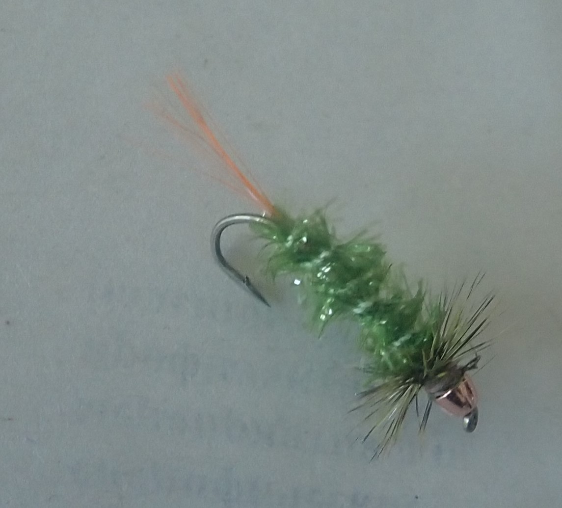 ловчая мушка на ленка. Форель крупного хариуса в солнечный день по светлой воде Тело синель кристал Оливковый Мустад Щетинки мех козы, Жабо Перо петух Гризли Головка медный конусный заглубитель